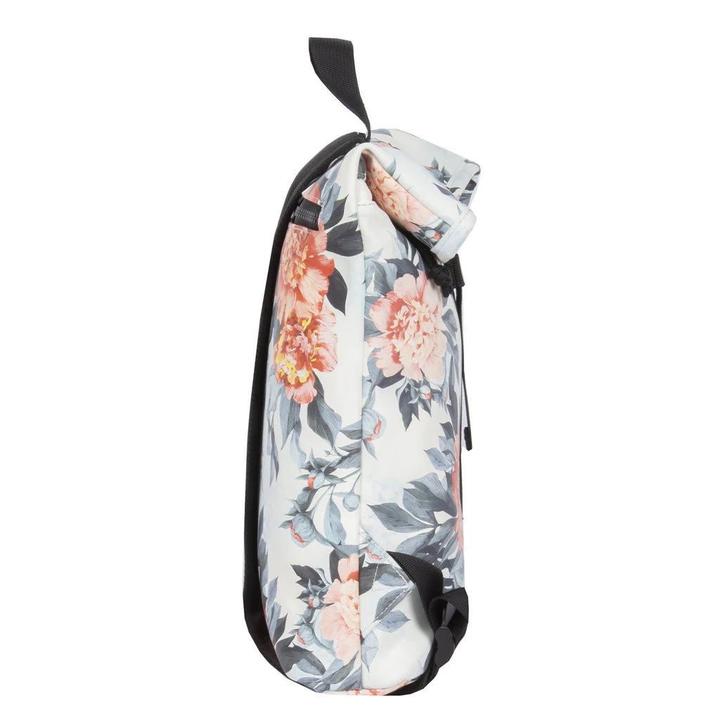 Deze trendy waterafstotende Flower Design rugtas draagt comfortabel door het lichtgewicht en de gewatteerde schouderbanden. Toch behoudt deze rugzak zijn charme door de fijne vormgeving. Het hoofdvak is eenvoudig te vergroten of verkleinen door het oprol gedeelte aan de bovenkant. Hierdoor kun je tot 10 cm meer ruimte creëren. Het hoofdvak is afsluitbaar met een stevige rits en een gespsluiting die als een zwarte strook doorloopt in het design. In het zilverkleurige hoofdvak zitten twee insteekvakjes en een ritsvakje voor bijvoorbeeld je telefoon. Op de voorkant en achterkant van de rugzak zit ook een extra ritsvak, handig voor kleine spullen waar je snel bij moet kunnen. Het stevige handvat zorgt ervoor dat de tas eenvoudig op te pakken en op te hangen is.