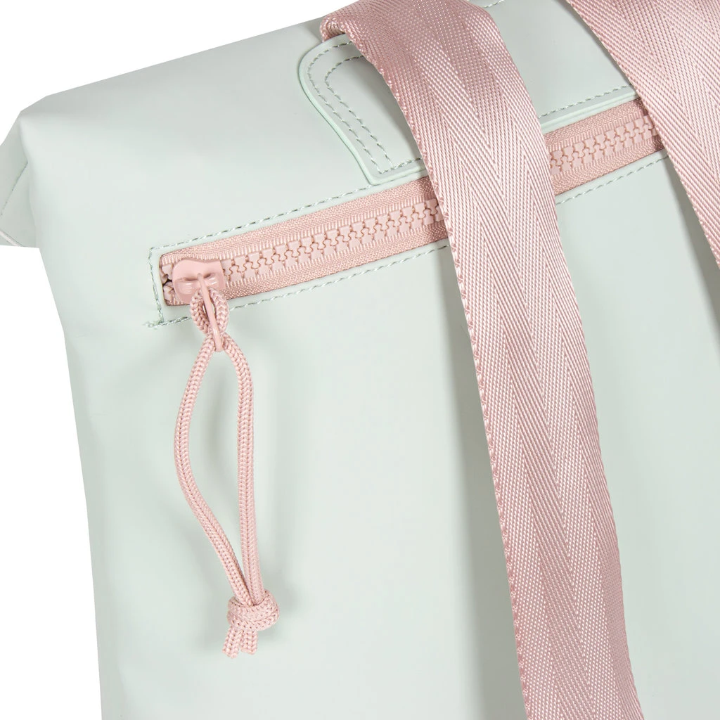Deze trendy waterafstotende rugtas in leuke kleuren draagt comfortabel door het lichtgewicht en de gewatteerde schouderbanden. Toch behoudt deze rugzak zijn charme door de fijne vormgeving. Het hoofdvak is eenvoudig te vergroten of verkleinen door het oprol gedeelte aan de bovenkant. Hierdoor kun je tot 10 cm meer ruimte creëren. Het hoofdvak is afsluitbaar met een stevige rits en een gespsluiting die als een strook, met een contrasterende kleur, doorloopt in het design. In het zilverkleurige hoofdvak zitten twee insteekvakjes en een ritsvakje voor bijvoorbeeld je telefoon. Op de voorkant en achterkant van de rugzak zit ook een extra ritsvak, handig voor kleine spullen waar je snel bij moet kunnen. Het stevige handvat zorgt ervoor dat de tas eenvoudig op te pakken en op te hangen is.