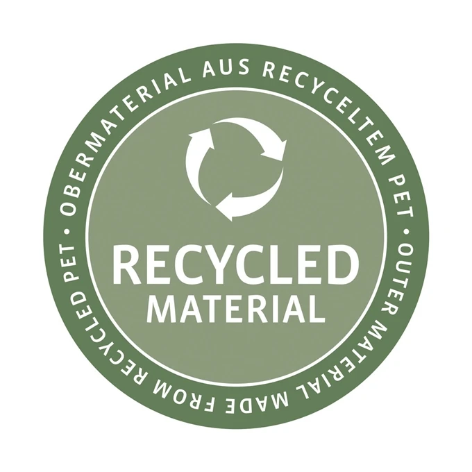- Buitenmateriaal: hoogwaardig polyesterweefsel gemaakt van gerecycled PET, waterafstotend
